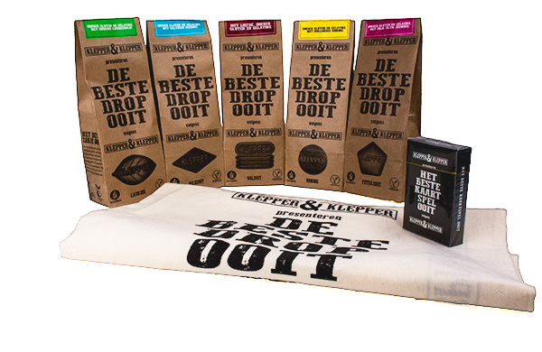 Onze Klepper en Klepper Beste Dropmix Ooit combineert het beste van 5 werelden: namelijk alle smaken van Klepper & Klepper in een geniale mix, samen met wat leuke extra's! Dat niemand dat nog heeft gedaan, snappen wij ook geen snars van. Maar goed, iemand moet de toon zetten, toch? Daarom hebben wij wat moois geregeld wat niemand anders heeft - een waanzinnig mooie katoenen, milieuvriendelijke tas (tegenwoordig ook wel een “tote bag” genoemd, door de fashionista’s) en een prachtig pakje kaarten met wel 2 heel bijzondere jokers… Of je nu gaat hartenjagen, klaverjassen, bridgen of pokeren - niet vals spelen, he! En als je het dan toch doet, zorg dan dat niemand je snapt. Dit pakketje is echt ideaal als je nog een cadeautje zoekt voor een dropliefhebber of een echte drop fanaat. Je geeft ze namelijk de beste dropmix ooit (volgens Klepper en Klepper - en Dropgigant trouwens ook!)! Als dat geen geweldig cadeau is, dan weten wij het ook niet meer. En als klap op de vuurpijl zit er dan ook nog het beste kaartspel ooit en een herbruikbare tas bij. We zouden bijna vergeten dat er dus ook 5x 200g Klepper en Klepper drop in zit, dat is ook goed om te vermelden. Wie ga jij verrassen met deze geweldige samenstelling? Uiteraard is “mijzelf!” ook gewoon een heel goed antwoord. Wij begrijpen die Klepper Fans heel goed. Geniet van de Beste Dropmix Ooit!
