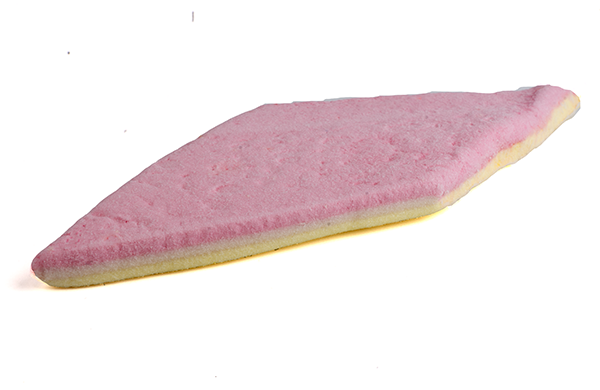 Wij verkopen deze Maxi Ruitspek per stuk, omdat je soms gewoon één perfecte gigantische ruit wil. Je ontvangt ‘m in de originele stijl zoals l’Ancienne ‘m bedoeld heeft: een klassiek geel-roze ruitvormig spekje, ongeveer 29 tot 30 cm, 11 tot 12 cm breed, en gemiddeld 100 gram. Ze zijn per stuk verpakt.