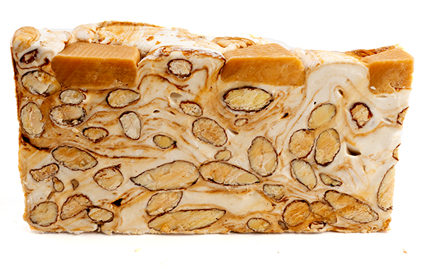 Amandelen, suiker, honing, eiwit, glucose siroop, plantaardig vet, Melk poeder, Sojalecithine (E322) maiszetmeel, aroma, Eetpapier bestaande uit aardappelzetmeel en palm olie. Kan sporen van andere noten, sulfiet en vruchten bevatten bewaren bij max 20°
